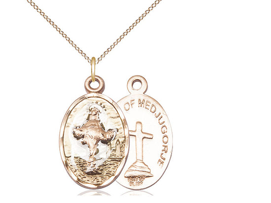 14kt Gold Filled Our Lady of Medugorje Pendant Necklace 7/8 x 1/2 - 18 Inch Chain