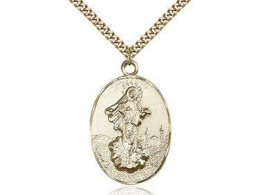 Large 14kt Gold Filled Our Lady of Medugorje Pendant Necklace 1 3/8 x 7/8 - 24 Inch Chain