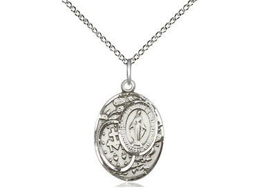 Sterling Silver Miraculous Pendant Necklace 3/4 x 1/2 - 18 Inch Chain