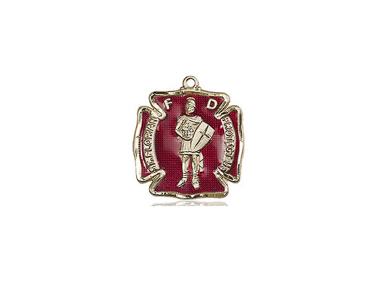 Small 14kt Solid Gold St. Florian Medal with Red Epoxy 1/2 x 1/2