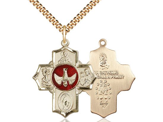 Embrace your faith with timeless elegance. This exquisite Gold Filled 5-Way Necklace, measuring 1 1/4 x 1, is meticulously handcrafted in the USA by Bliss, a renowned name in religious jewelry. The durable 24-inch Gold Filled curb chain gracefully drapes with a secure lobster clasp for a comfortable, everyday wear.