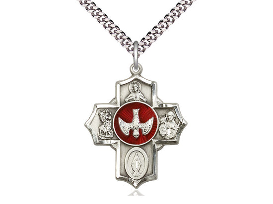 Embrace your faith with timeless elegance. This exquisite Sterling Silver 5-Way Necklace, measuring 1 1/4 x 1, is meticulously handcrafted in the USA by Bliss, a renowned name in religious jewelry. The durable 24-inch Sterling Silver curb chain gracefully drapes with a secure lobster clasp for a comfortable, everyday wear.