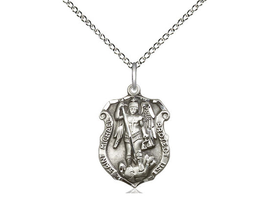 Sterling Silver St. Michael the Archangel Pendant Necklace 3/4 x 1/2 - 18 Inch Chain
