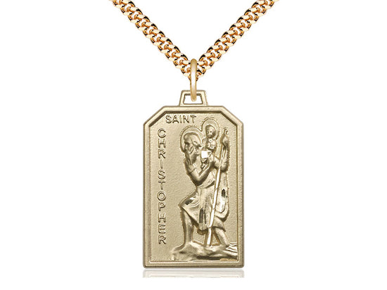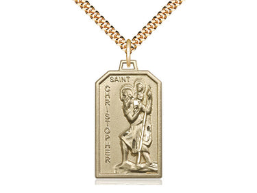 14kt Gold Filled St. Christopher Pendant Necklace 1 1/8 x 5/8 - 24 Inch Chain
