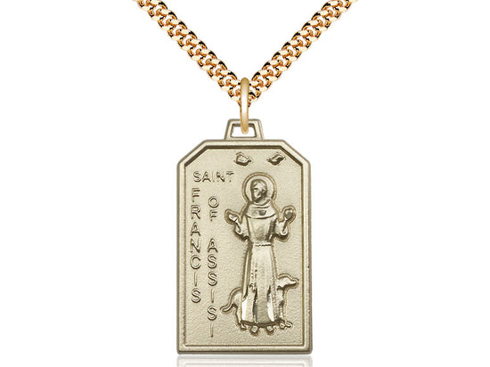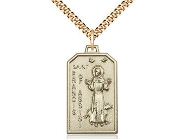 14kt Gold Filled St. Francis Pendant Necklace 1 1/8 x 5/8 - 24 Inch Chain