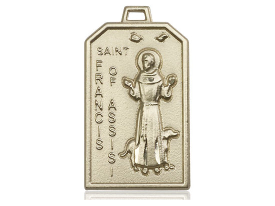 14kt Solid Gold St. Francis Medal 1 1/8 x 5/8