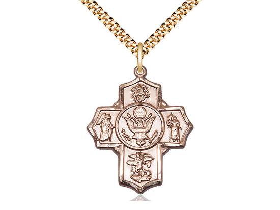 Large 14kt Gold Filled 5-Way / Army Pendant Necklace 1 1/4 x 1 - 24 Inch Chain