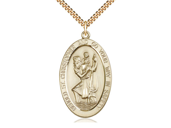 Large 14kt Gold Filled St. Christopher Pendant Necklace 1 5/8 x 1 - 24 Inch Chain