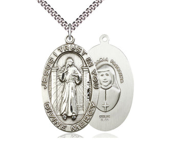 Large Sterling Silver Divine Mercy Pendant Necklace 1 5/8 x 1 - 24 Inch Chain