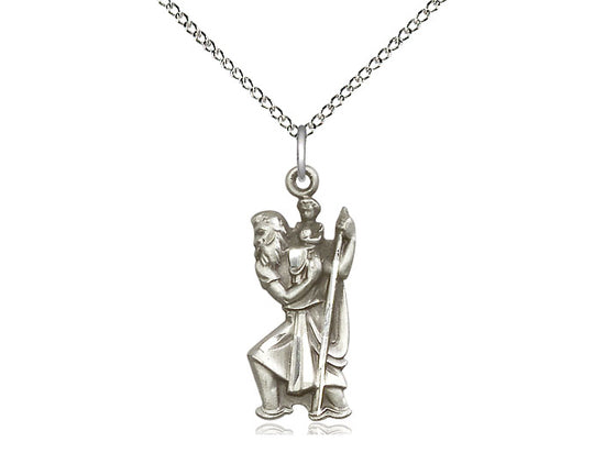 Sterling Silver St. Christopher Pendant Necklace 7/8 x 3/8 - 18 Inch Chain