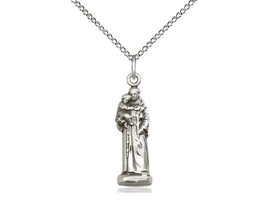 Sterling Silver St. Anthony Pendant Necklace 1 x 1/4 - 18 Inch Chain