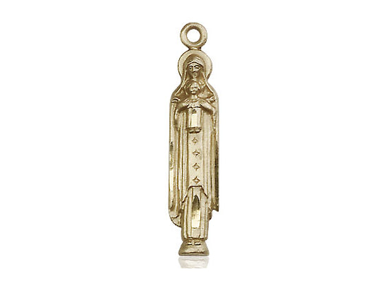 Embrace your faith with timeless elegance. This exquisite 14KT Gold Madonna & Child Pendant, measuring 1 x 1/8, is meticulously handcrafted in the USA by Bliss, a renowned name in religious jewelry. The durable -inch 14KT Gold curb chain gracefully drapes with a secure lobster clasp for a comfortable, everyday wear.
