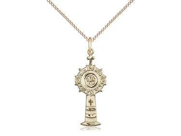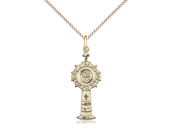 14kt Gold Filled Monstrance Pendant Necklace 1 x 3/8 - 18 Inch Chain
