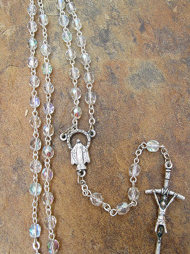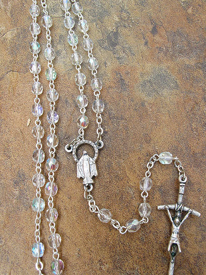 5mm Aurora Borealis Glass Catholic Rosary