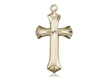 Embrace your faith with timeless elegance. This exquisite 14KT Gold Cross Pendant, measuring 1 1/8 x 5/8, is meticulously handcrafted in the USA by Bliss, a renowned name in religious jewelry. The durable -inch 14KT Gold curb chain gracefully drapes with a secure lobster clasp for a comfortable, everyday wear.