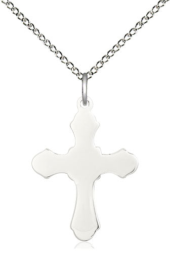 Embrace your faith with timeless elegance. This exquisite Sterling Silver Cross Necklace, measuring 7/8 x 5/8, is meticulously handcrafted in the USA by Bliss, a renowned name in religious jewelry. The durable 18-inch Sterling Silver curb chain gracefully drapes with a secure lobster clasp for a comfortable, everyday wear.