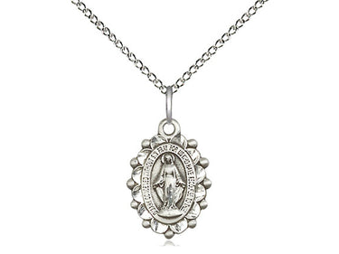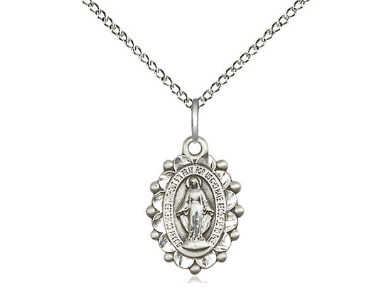 Small Sterling Silver Miraculous Pendant Necklace 5/8 x 3/8 - 18 Inch Chain