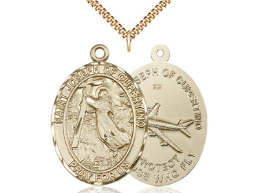 Extra Large 14kt Gold Filled St Joseph Cupertino Pendant Necklace 1 7/8 x 1 1/4 - 24 Inch Chain
