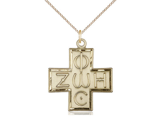 14kt Gold Filled Light & Life Cross Pendant Necklace 1 1/8 x 1 - 18 Inch Chain