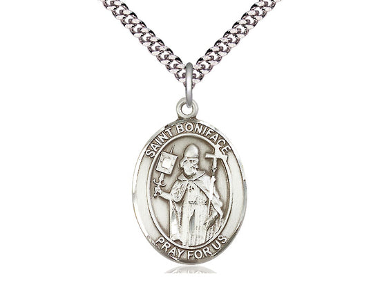 Sterling Silver St. Boniface Pendant Necklace 1 x 3/4 - 24 Inch Chain