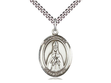 Sterling Silver St. Blaise Pendant Necklace 1 x 3/4 - 24 Inch Chain