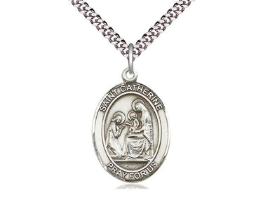 Sterling Silver St. Catherine of Siena Pendant Necklace 1 x 3/4 - 24 Inch Chain