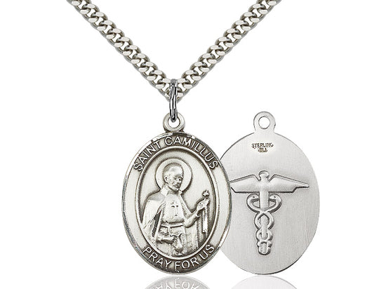 Sterling Silver St. Camillus of Lellis Pendant Necklace 1 x 3/4 - 24 Inch Chain