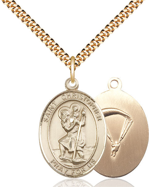 14kt Gold Filled St. Christopher / Paratrooper Pendant Necklace 1 x 3/4 - 24 Inch Chain