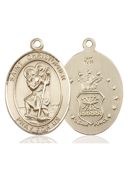 Exquisite 14KT Gold Saint Christopher / Air Force Pendant (1 x 3/4) on Chain with Lobster Clasp - Handmade in the USA by Bliss