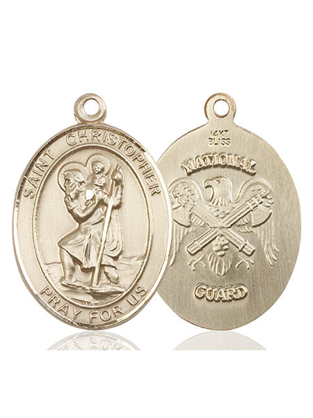 Exquisite 14KT Gold Saint Christopher / Nat'l Guard Pendant (1 x 3/4) on Chain with Lobster Clasp - Handmade in the USA by Bliss