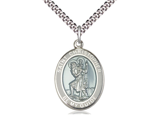 Sterling Silver St. Christopher White Border Penda Necklace 1 x 3/4 - 24 Inch Chain
