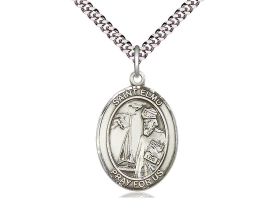 Embrace your faith with timeless elegance. This exquisite Sterling Silver Saint Elmo Necklace, measuring 1 x 3/4, is meticulously handcrafted in the USA by Bliss, a renowned name in religious jewelry. The durable 24-inch Sterling Silver curb chain gracefully drapes with a secure lobster clasp for a comfortable, everyday wear. The Saint Elmo is a patron saint of stomach diseases.