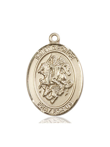 Embrace your faith with timeless elegance. This exquisite 14KT Gold Saint George/Paratrooper Pendant, measuring 1 x 3/4, is meticulously handcrafted in the USA by Bliss, a renowned name in religious jewelry. The durable -inch 14KT Gold curb chain gracefully drapes with a secure lobster clasp for a comfortable, everyday wear.