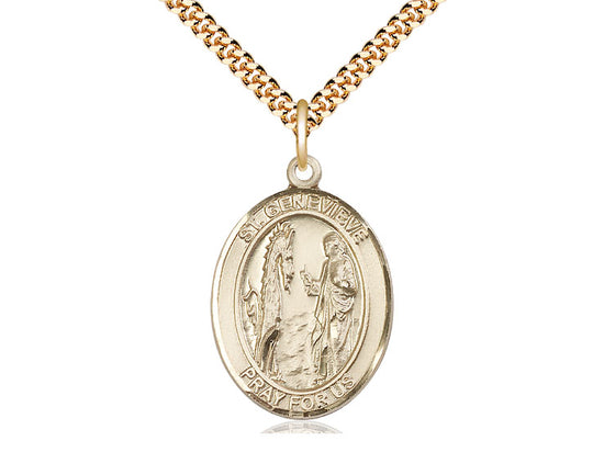 14kt Gold Filled St. Genevieve Pendant Necklace 1 x 3/4 - 24 Inch Chain