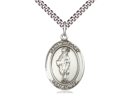 Sterling Silver St. Gregory the Great Pendant Necklace 1 x 3/4 - 24 Inch Chain