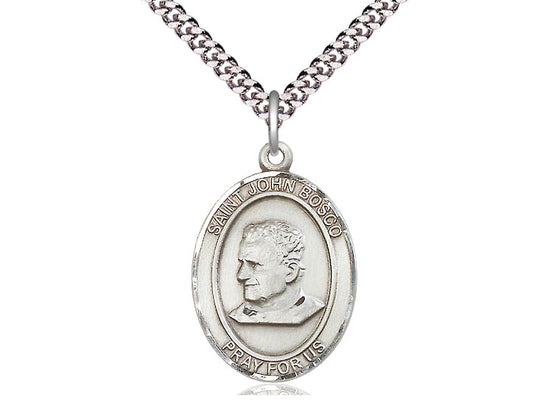 Sterling Silver St. John Bosco Pendant Necklace 1 x 3/4 - 24 Inch Chain