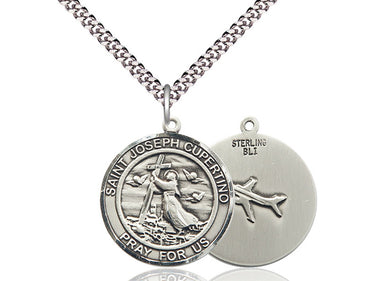 Embrace your faith with timeless elegance. This exquisite Sterling Silver Saint Joseph of Cupertino Necklace, measuring 1 x 5/8, is meticulously handcrafted in the USA by Bliss, a renowned name in religious jewelry. The durable 24-inch Sterling Silver curb chain gracefully drapes with a secure lobster clasp for a comfortable, everyday wear. The Saint Joseph of Cupertino is a patron saint of pilots, air force.