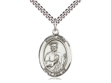 Sterling Silver St. Jude Thaddeus Pendant Necklace 1 x 3/4 - 24 Inch Chain