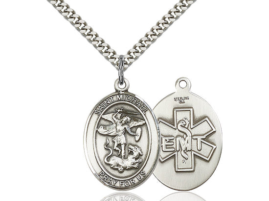 Sterling Silver St. Michael / EMT Pendant Necklace 1 x 3/4 - 24 Inch Chain