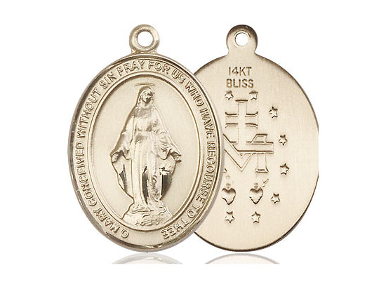 14kt Solid Gold Miraculous Medal 1 x 3/4