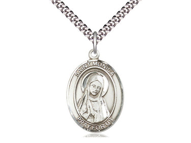 Sterling Silver St. Monica Pendant Necklace 1 x 3/4 - 24 Inch Chain