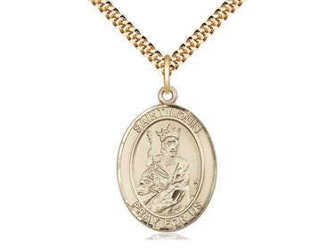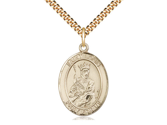 Embrace your faith with timeless elegance. This exquisite Gold Filled Saint Louis Necklace, measuring 1 x 3/4, is meticulously handcrafted in the USA by Bliss, a renowned name in religious jewelry. The durable 24-inch Gold Filled curb chain gracefully drapes with a secure lobster clasp for a comfortable, everyday wear. The Saint Louis is a patron saint of builders, parenthood.