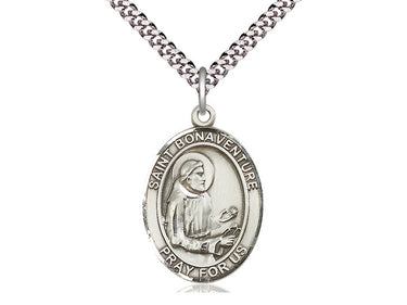 Sterling Silver St. Bonaventure Pendant Necklace 1 x 3/4 - 24 Inch Chain