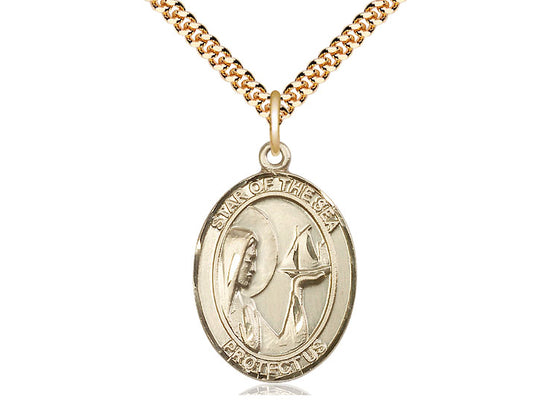 14kt Gold Filled Our Lady Star of the Sea Pendant Necklace 1 x 3/4 - 24 Inch Chain