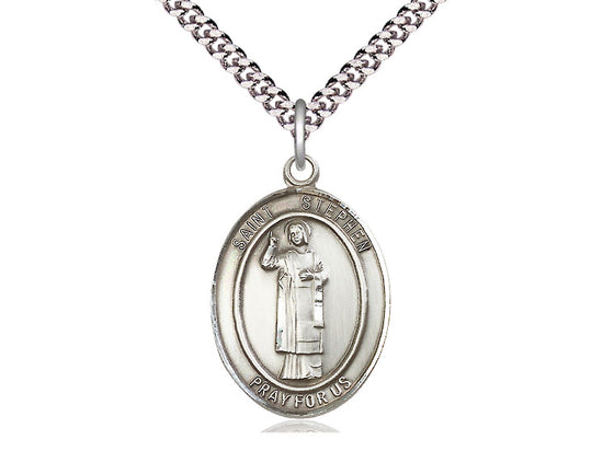 Sterling Silver St. Stephen the Martyr Pendant Necklace 1 x 3/4 - 24 Inch Chain