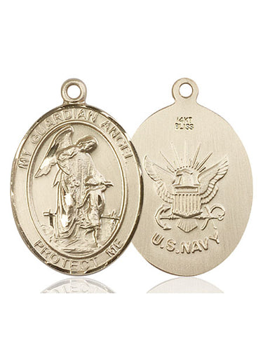 Embrace your faith with timeless elegance. This exquisite 14KT Gold Guardian Angel / Navy Pendant, measuring 1 x 3/4, is meticulously handcrafted in the USA by Bliss, a renowned name in religious jewelry. The durable -inch 14KT Gold curb chain gracefully drapes with a secure lobster clasp for a comfortable, everyday wear.