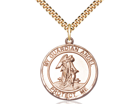 Embrace your faith with timeless elegance. This exquisite Gold Filled Guardian Angel Necklace, measuring 1 x 5/8, is meticulously handcrafted in the USA by Bliss, a renowned name in religious jewelry. The durable 24-inch Gold Filled curb chain gracefully drapes with a secure lobster clasp for a comfortable, everyday wear.