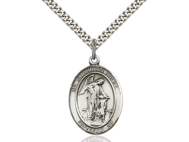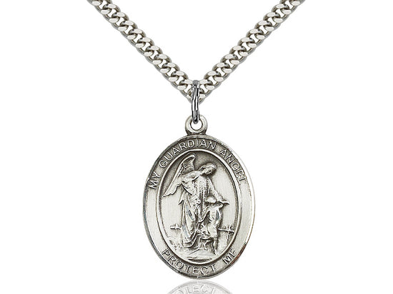 Sterling Silver Guardian Angel Pendant Necklace 1 x 3/4 - 24 Inch Chain