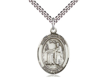 Sterling Silver St. Valentine of Rome Pendant Necklace 1 x 3/4 - 24 Inch Chain