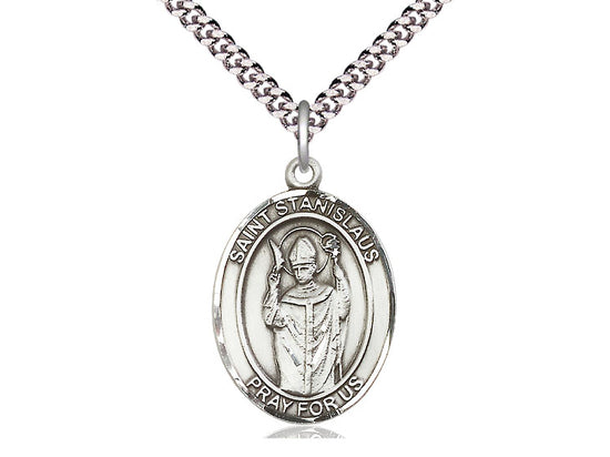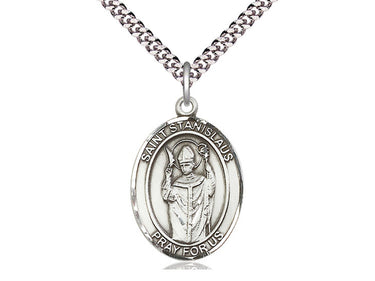 Sterling Silver St. Stanislaus Pendant Necklace 1 x 3/4 - 24 Inch Chain
